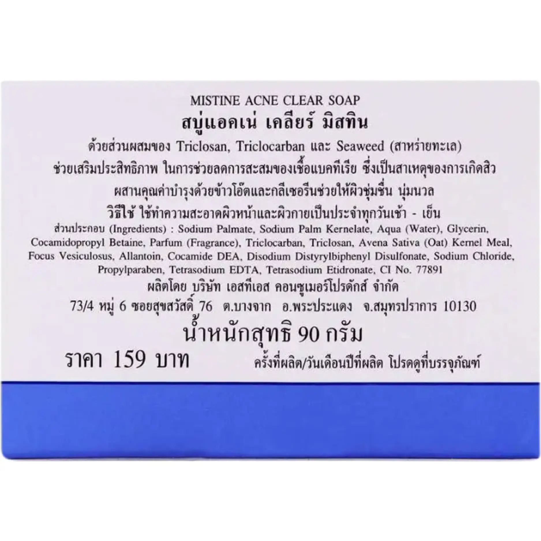 Tags:Mistine acne soap, anti-acne bar, comedolytic soap, triclosan cleanser, moisturizing acne soap